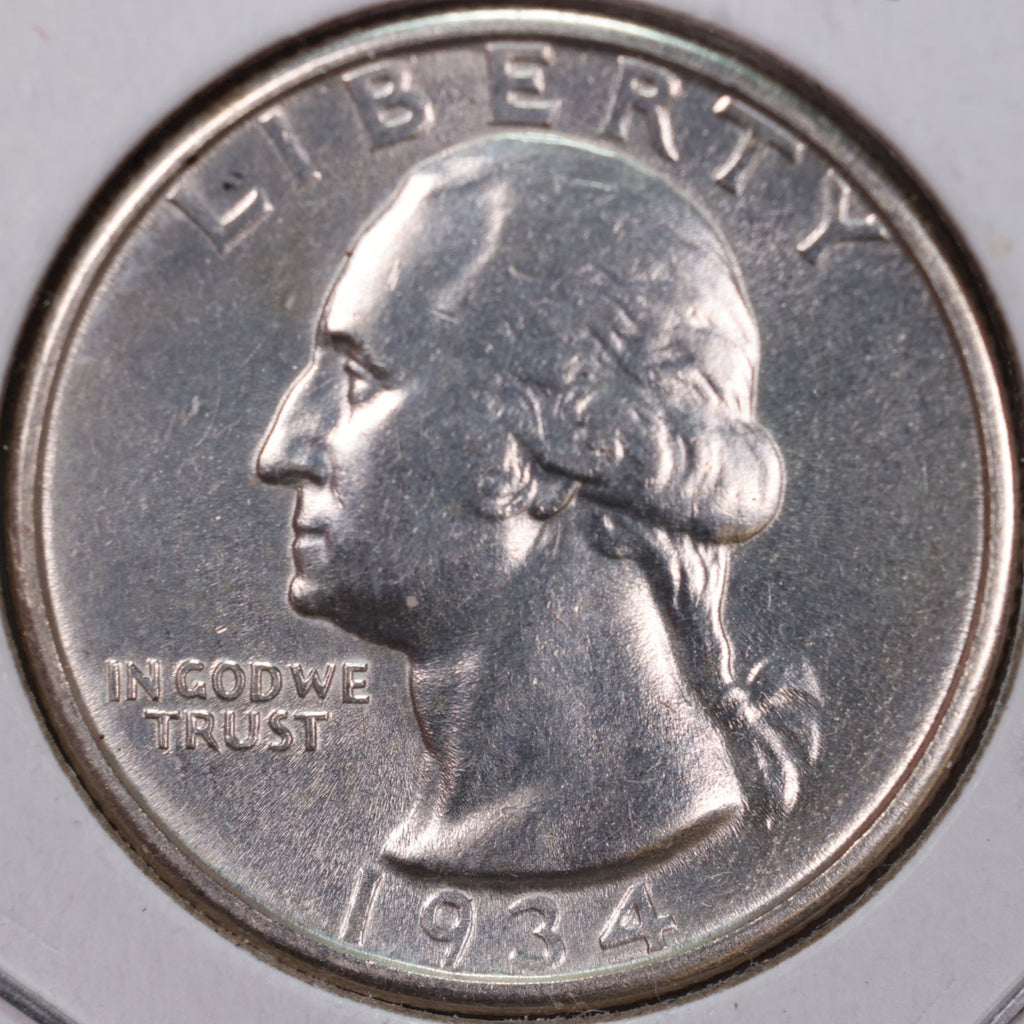 1934 Washington Silver Quarter, Mint State Uncirculated Coin, Store #QR0172
