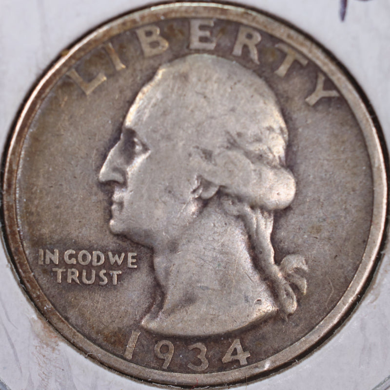 1934 Washington Silver Quarter, Fine+ Circulated Coin, Store #QR0176