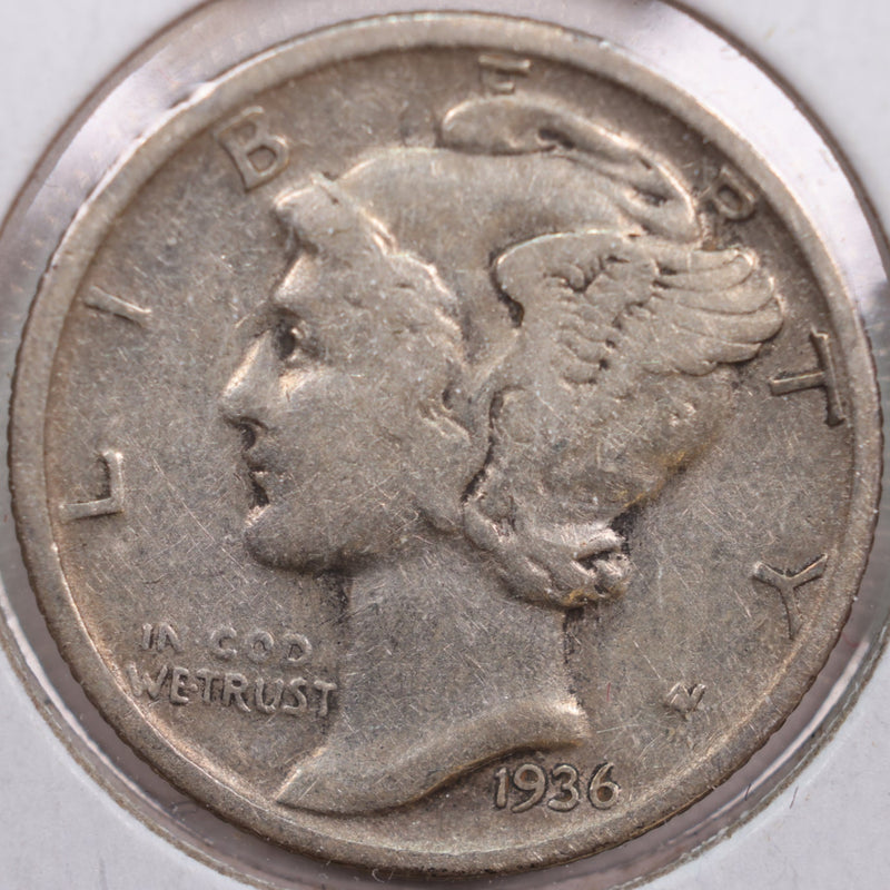 1936-D Mercury Silver Dime, Fine Circulated Coin, Store #DE0136