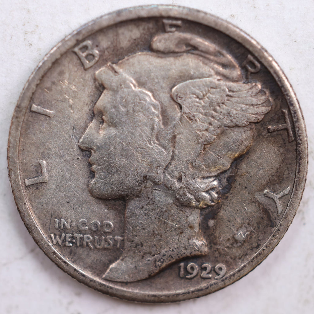 1929 Mercury Silver Dime, Fine Circulated Coin, Store #DE0403