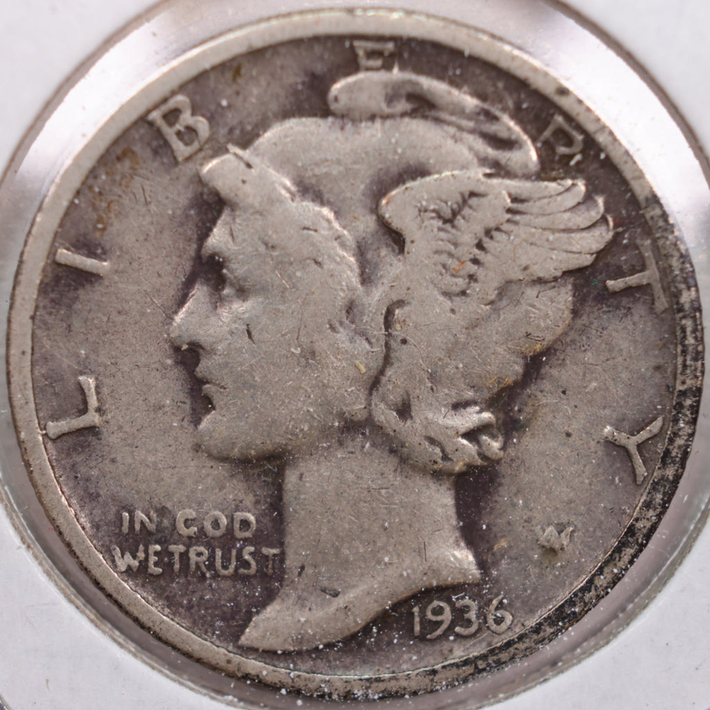 1936-S Mercury Silver Dime, Very Fine Circulated Coin, Store #DE0138