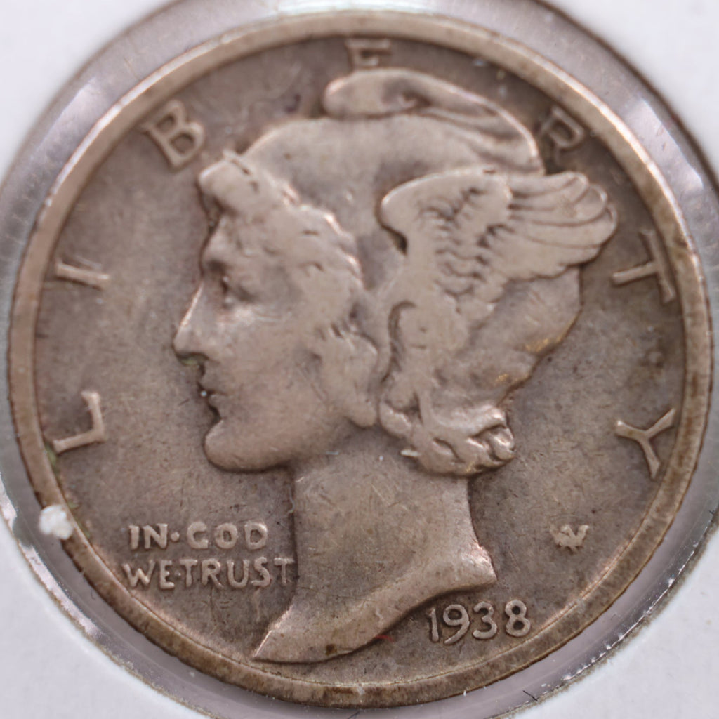 1938-S Mercury Silver Dime, Very Fine+ Circulated Coin, Store #DE0168