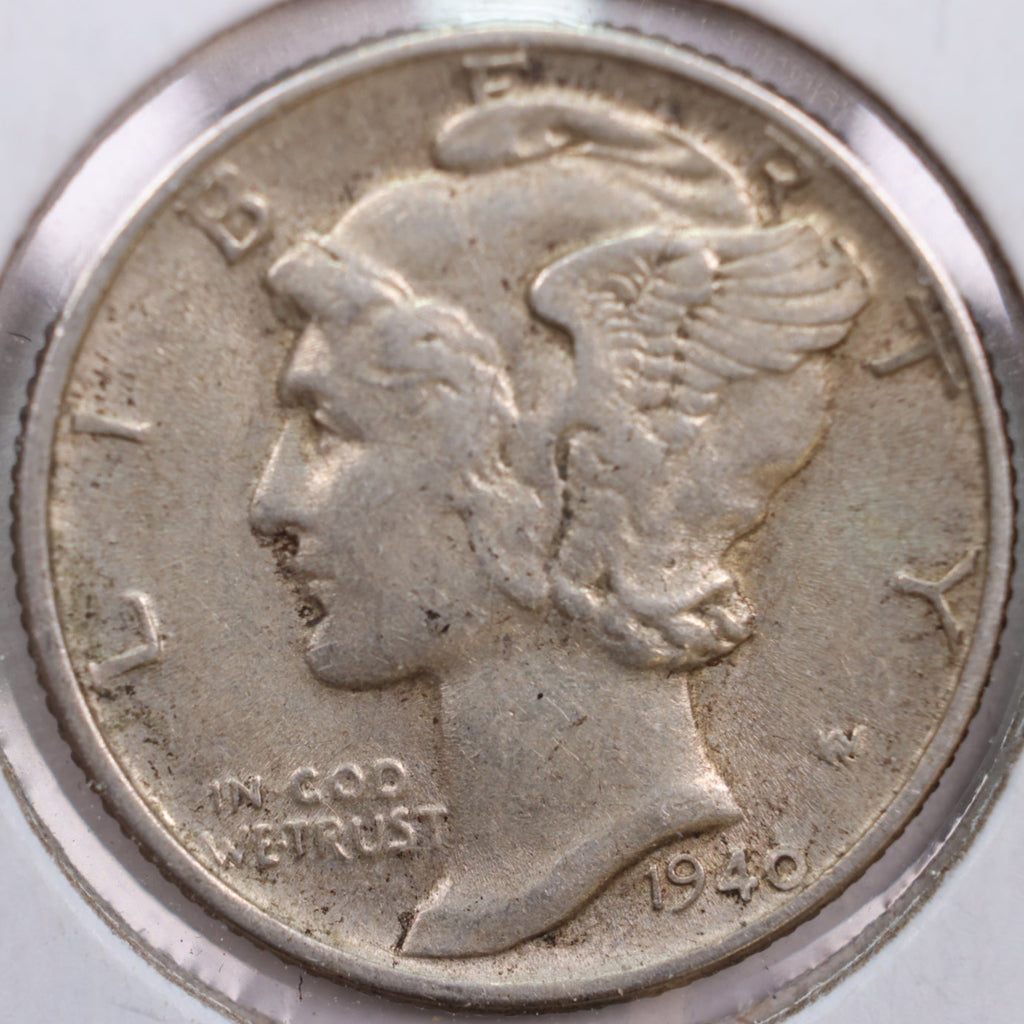 1940 Mercury Silver Dime, Very Fine+ Circulated Coin, Store #DE0201