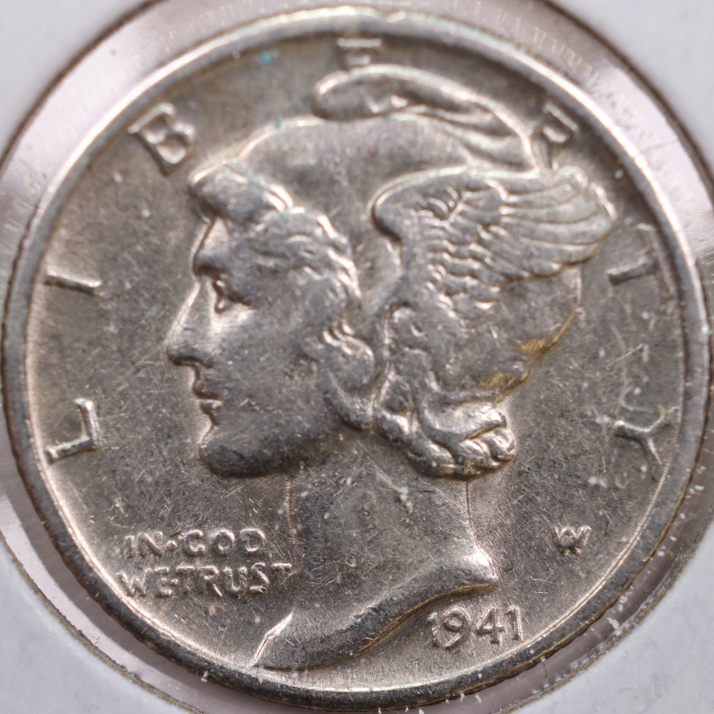1941-D Mercury Silver Dime, Very Fine+ Circulated Coin, Store #DE0216