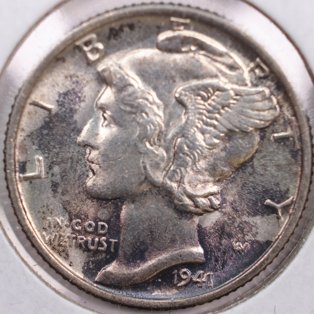 1941 Mercury Silver Dime, Mint State Uncirculated Coin, Store #DE0207