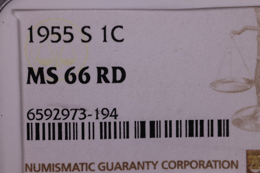 1955-S Lincoln Wheat Cents., NGC MS66 Red., Store #0864