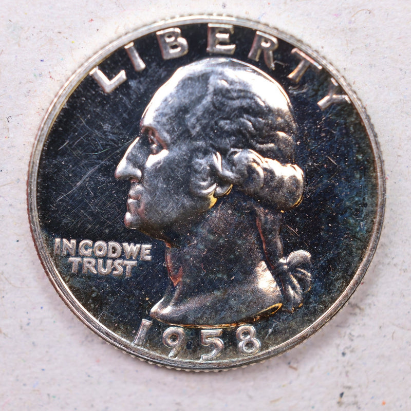1958 Washington Silver Quarter., Proof Strike Coin. Store #1160