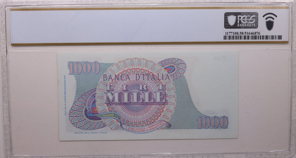 1965 1,000 Lire, Bank of Italy., PCGS AU-58 PPQ., Store #GWC017