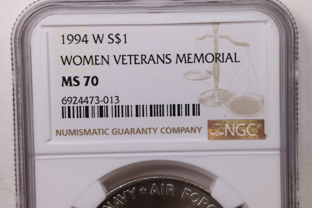 1994-W Women Veterans Memorial., Commemorative., NGC MS-70., Store #GMC007