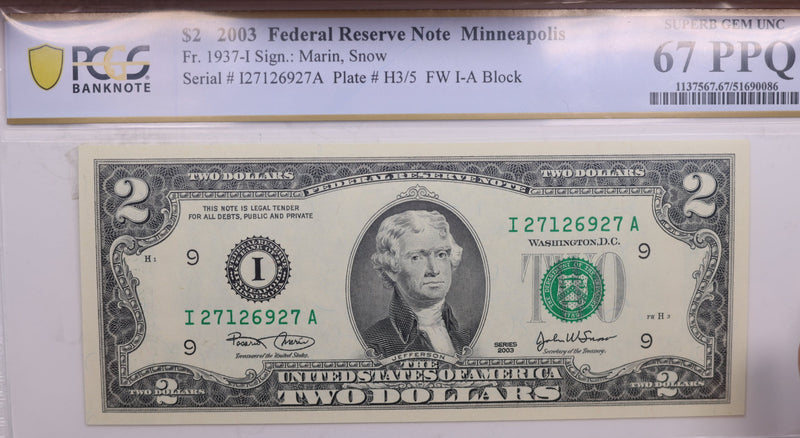 2003 $2., Federal Reserve Bank Note., PCGS CU-67., PPQ., GFRB076