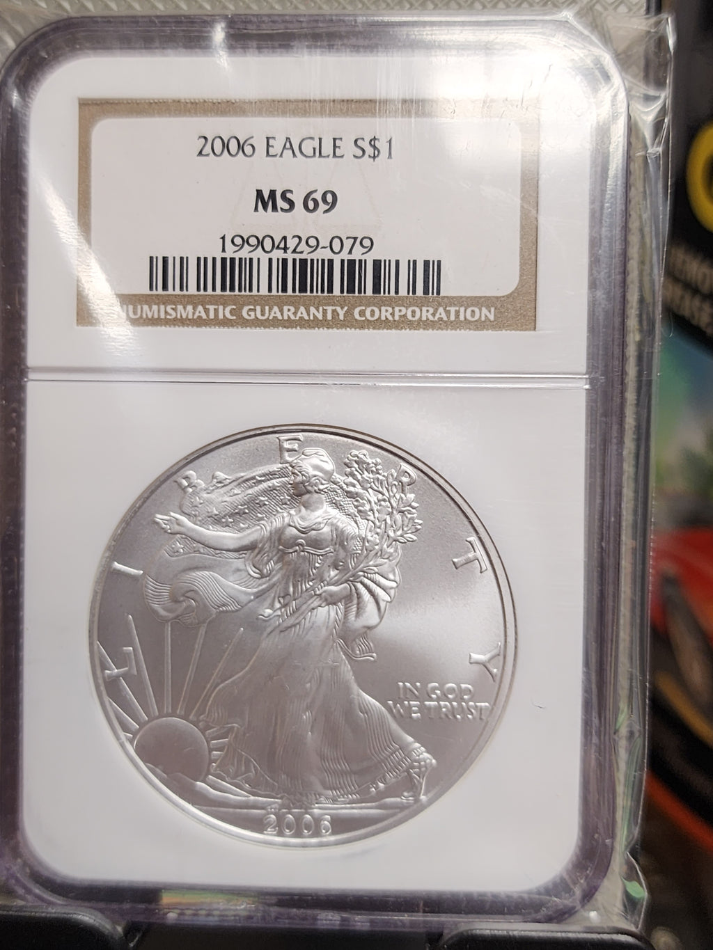 2006 Silver Eagle $1. NGC Graded MS-69 Un-Circulated Coin. Store #AE0089