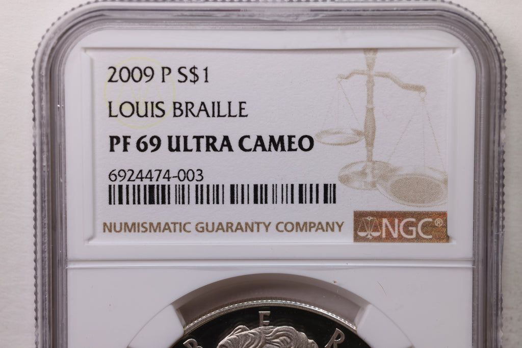 2009-P, Louis Braille., Silver Dollar Commemorative., NGC PF-69., Store #GMC018