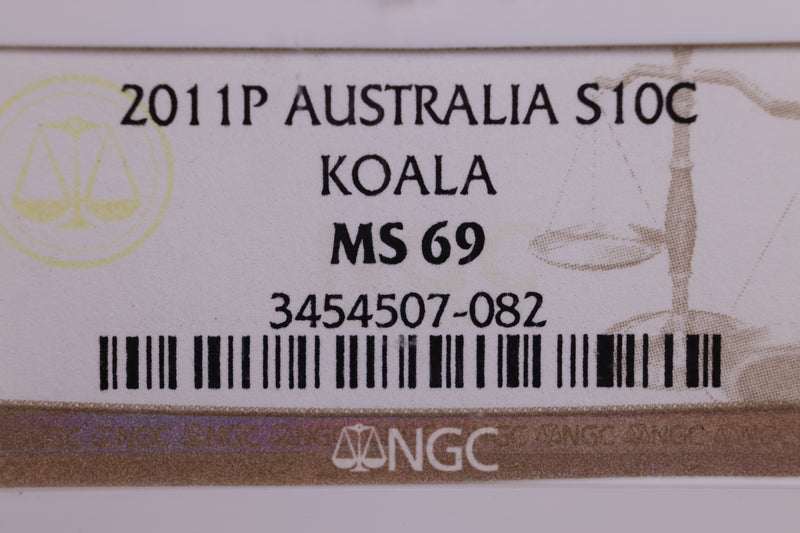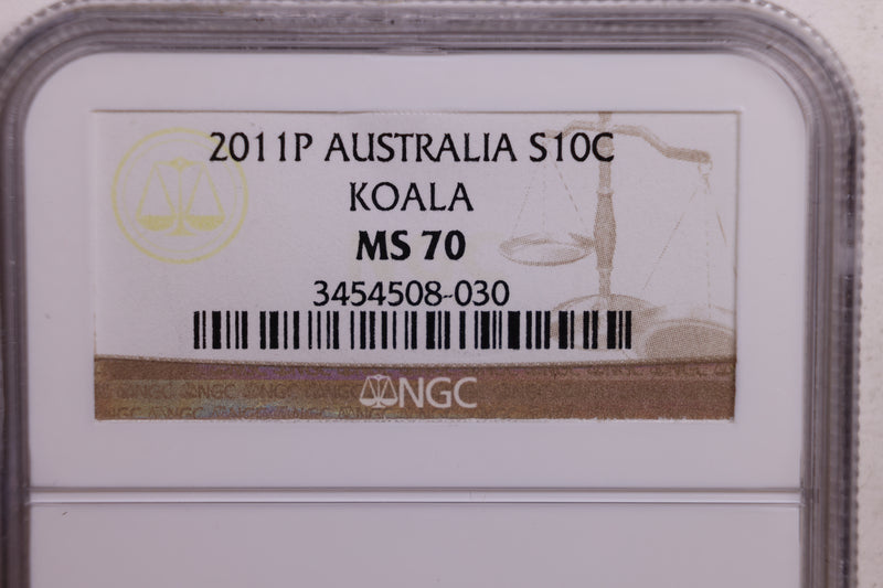 2011-P Australia KOALA Silver 10 Cent, NGC Holder, MS-70., Store Sale #SR0008.