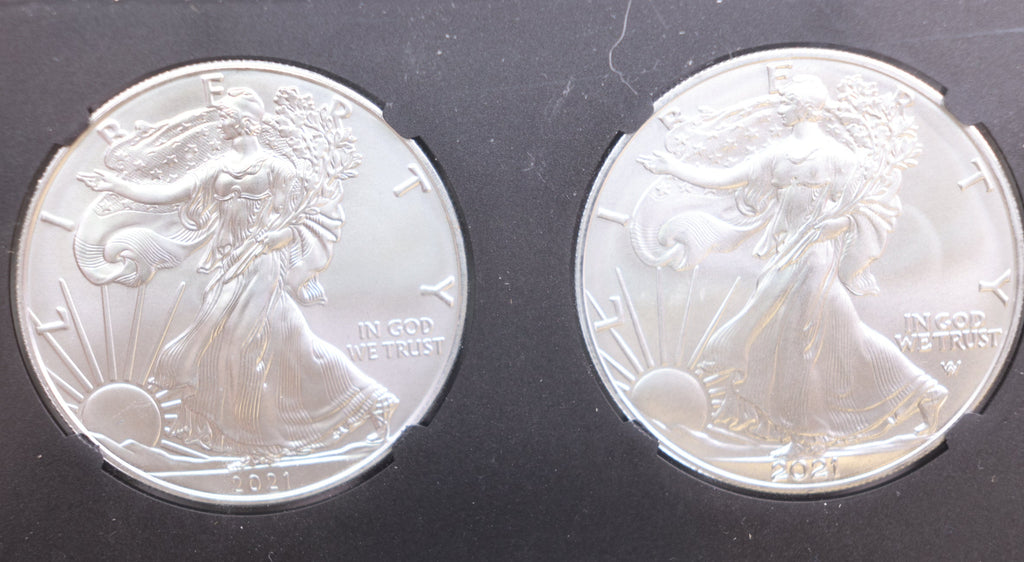 2021 American Silver Eagle, 2 Coin Set, Type 1 & 2, NGC Holder, Store SALE #AE0208.