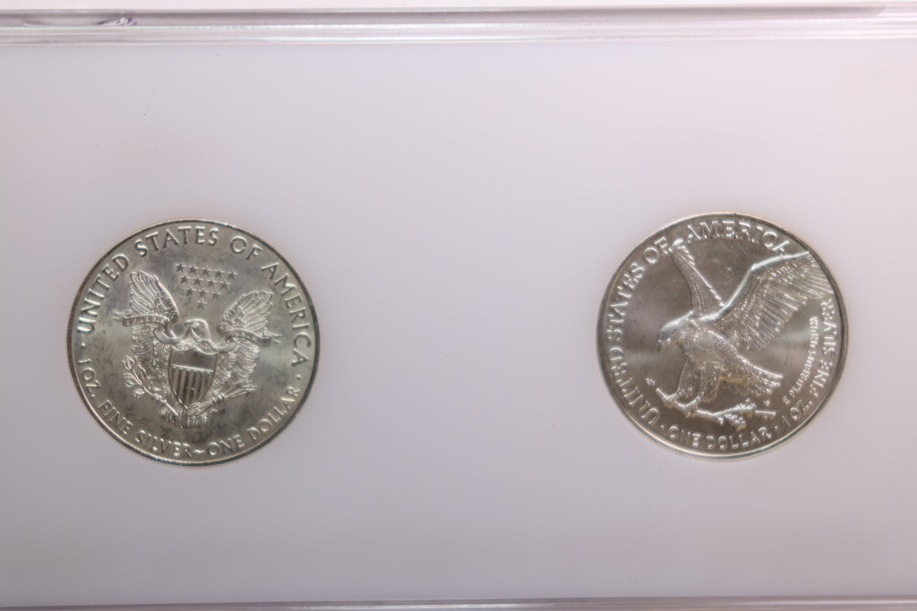 2021 American Silver Eagle, 2 Coin Set, Type 1 and 2, In Capital Holder, Store# AE0228.