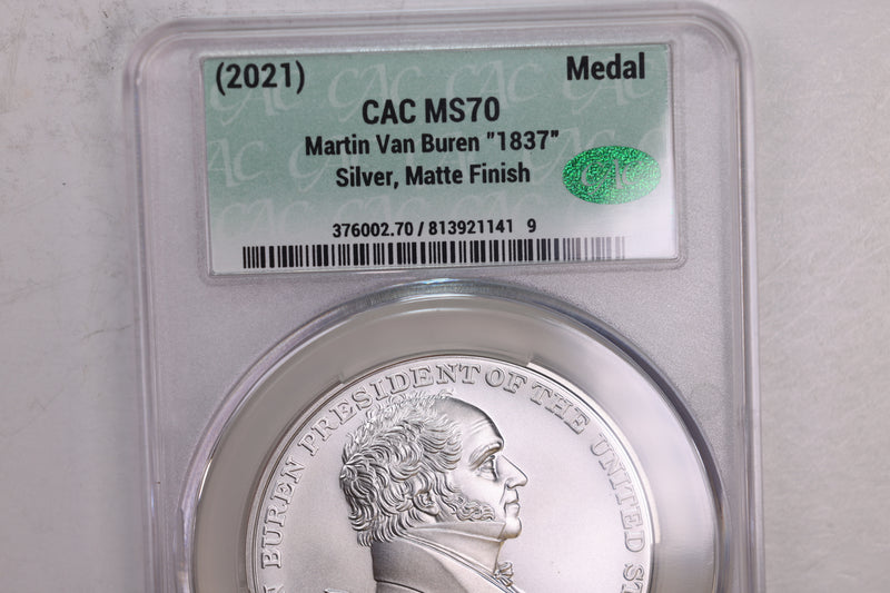 2021 Martin Van Buren., "1837"., U.S. Mint Silver Medal., CAC MS70., Store GMC121