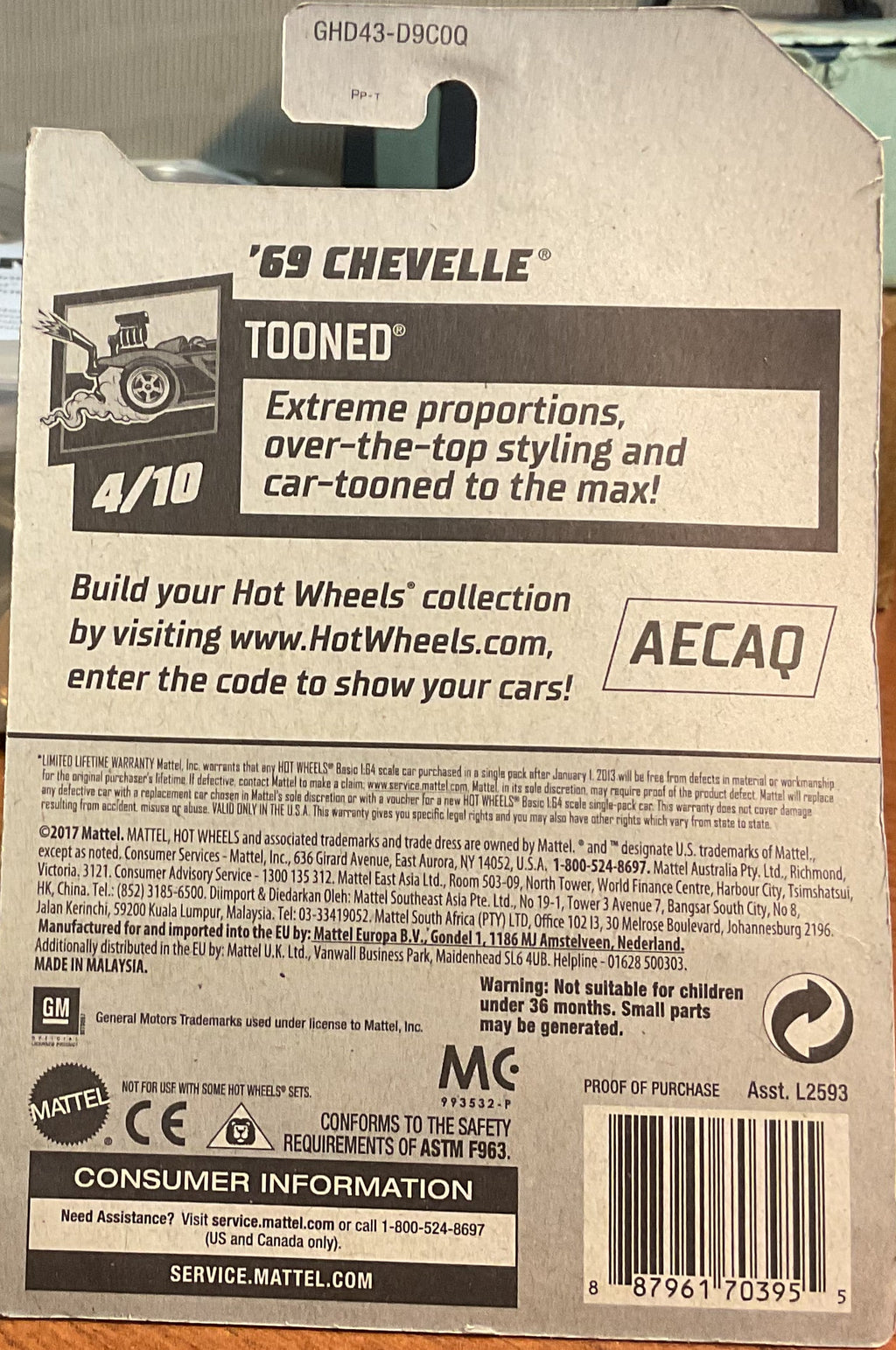 '69 CHEVELLE, TOONED, Wheels Toy Car, GHD43-D9C0Q, Store #TY054