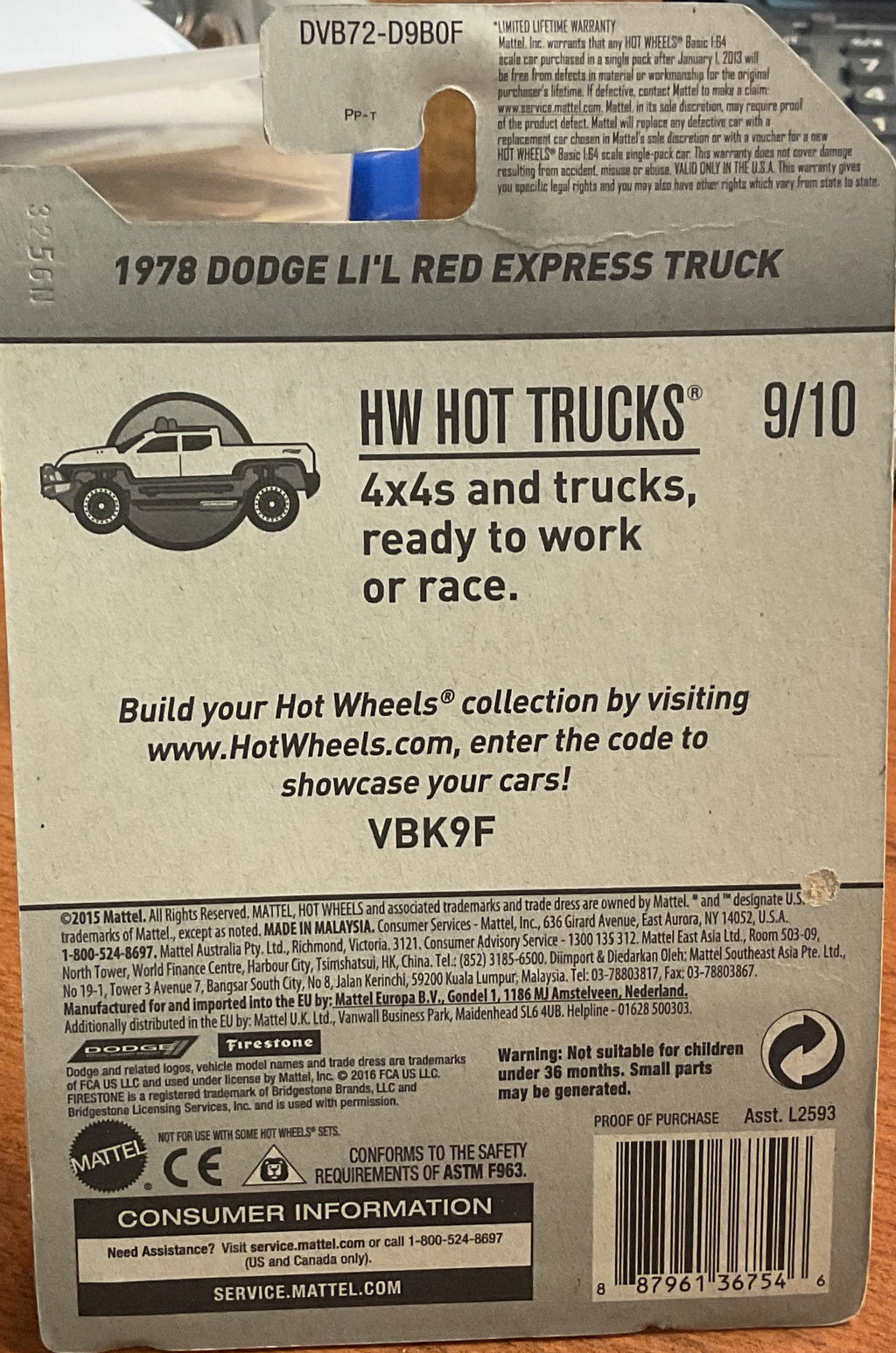 '78 DODGE LI'L RED , HW HOT TRUCKS, Wheels Toy Car, DVB72-D90F, Store #TY046