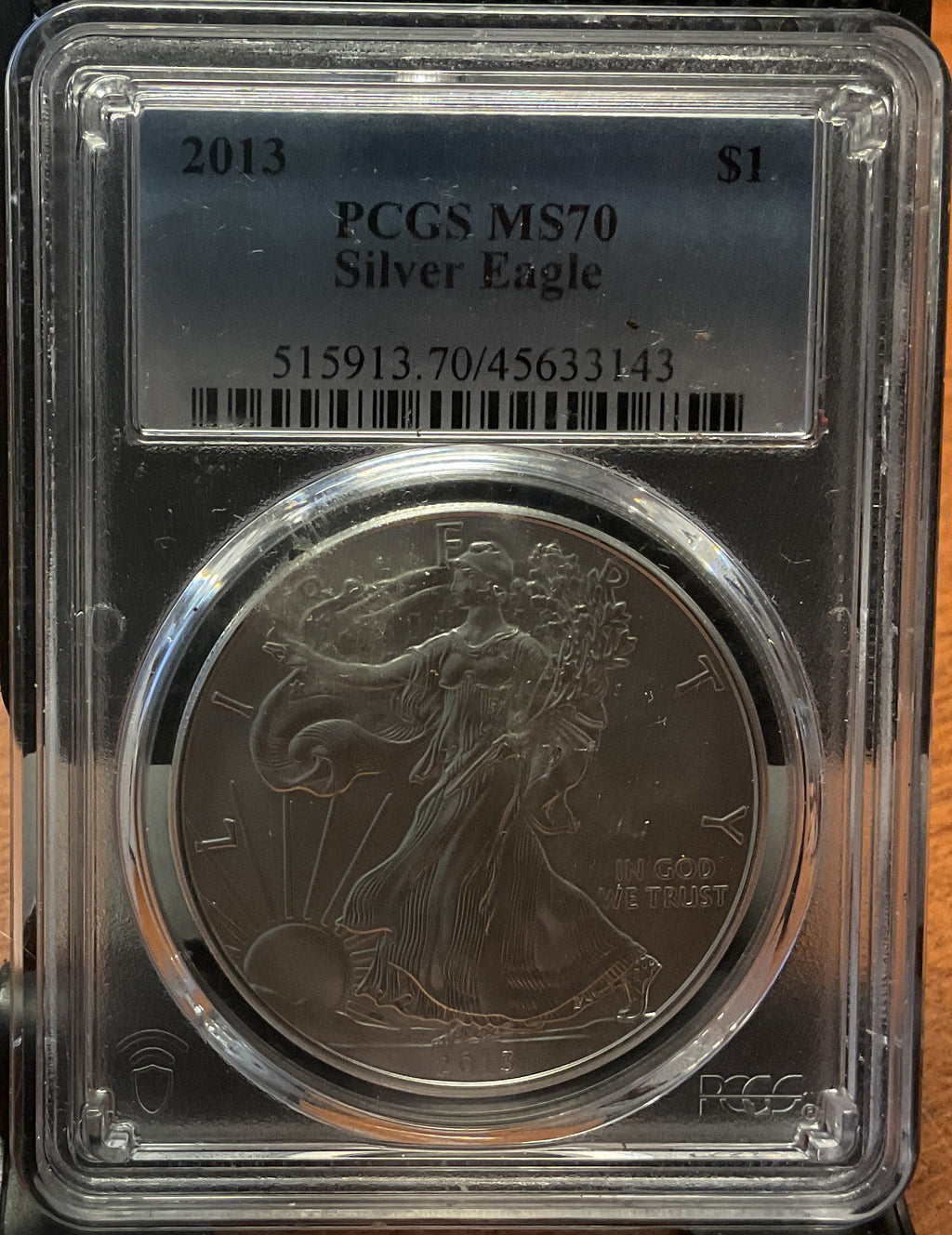 .999 Silver, 1 Troy Ounce, 2013 American Silver Eagle, PCGS MS-70, Store #AE0265