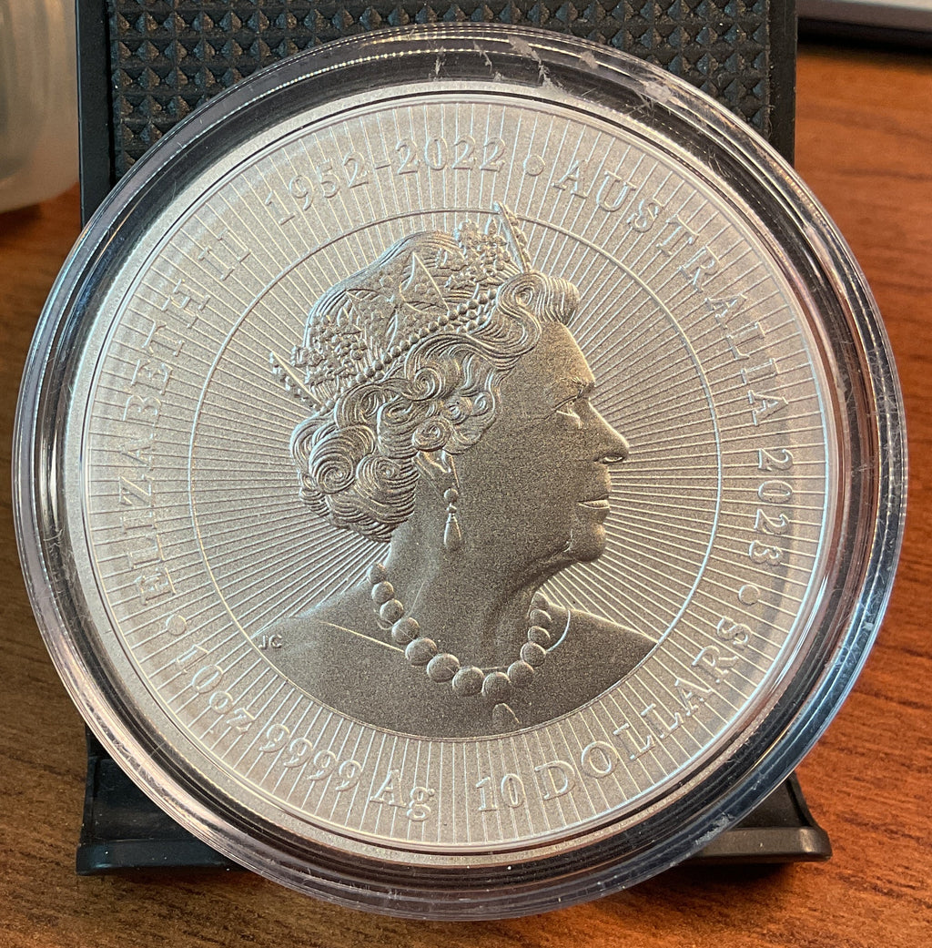 .999 Silver, 10 Troy Ounce, 2023 Australian $10 Kangaroo and Joey Coin, Store #SR035