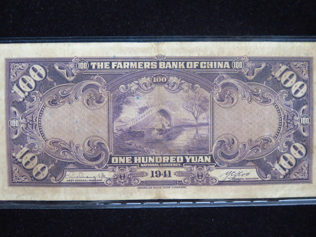 1941 100 Yuan National Currency, The Farmers Bank of China. Store #12423