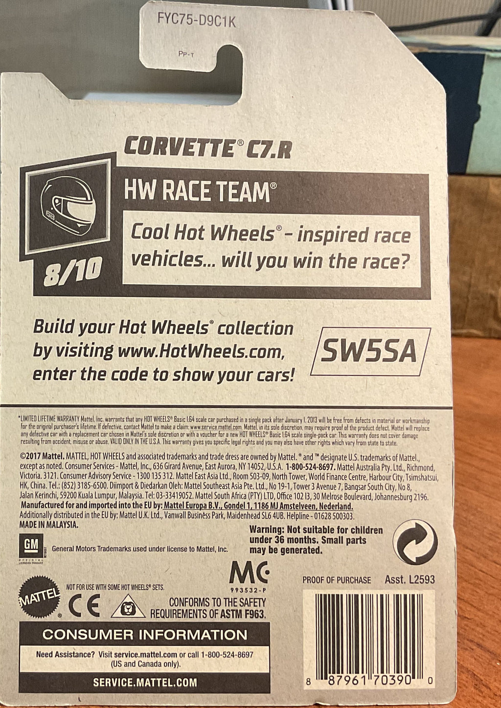 CORVETTE C7.R, HW RACE TEAM, Hot Wheels Toy Car, FYC75-D9C1K, Store #TY110
