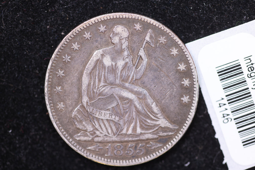 1855 Seated Liberty Half Dollar, Nice Strike, Circulated Coin, Store #14146