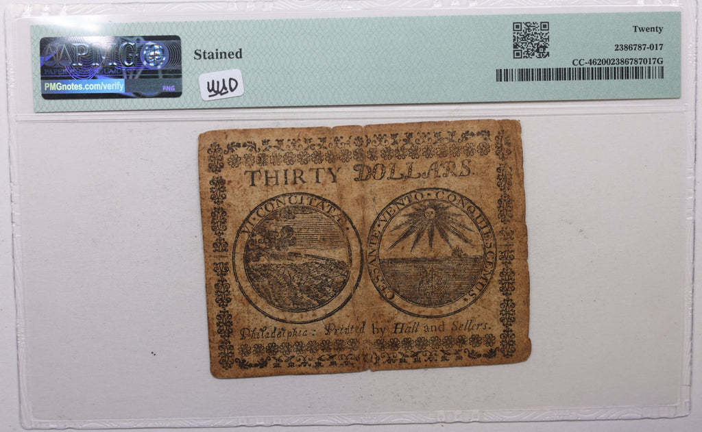 July 22, 1776, $30. Continental Currency, PMG Certified VF-20, Store Sale #GCY0002
