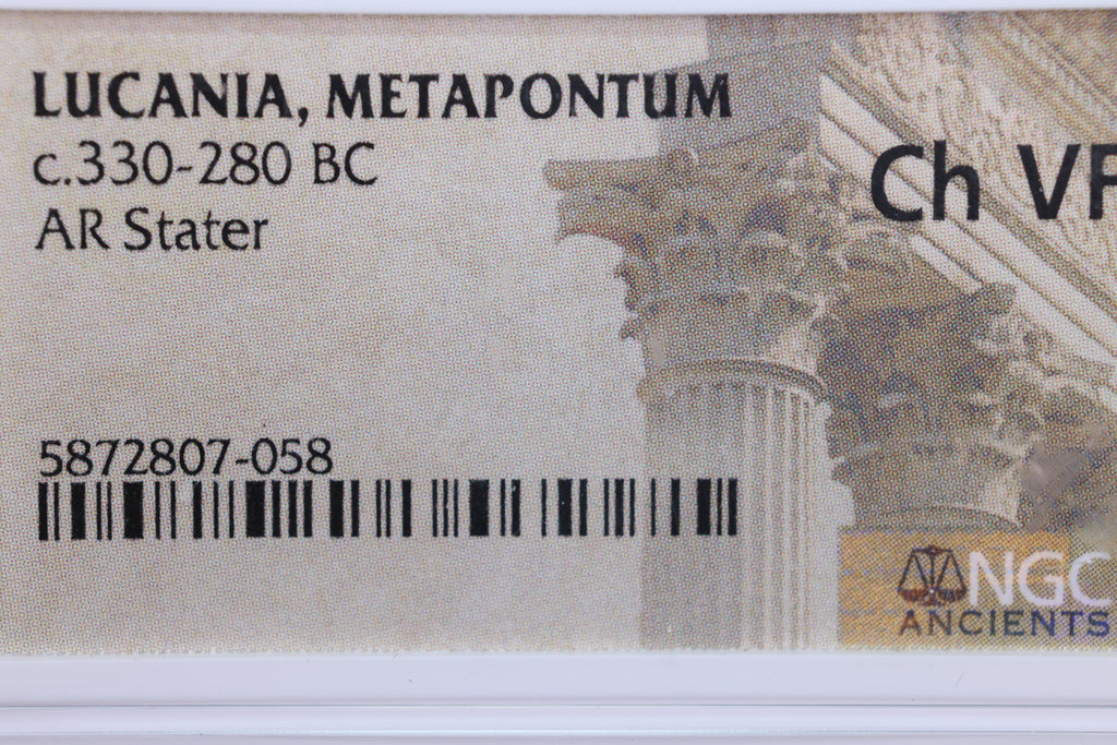 Lucania, Metapontum., 330-280 B.C.., NGC Certified Very Fine., Store# AT0019