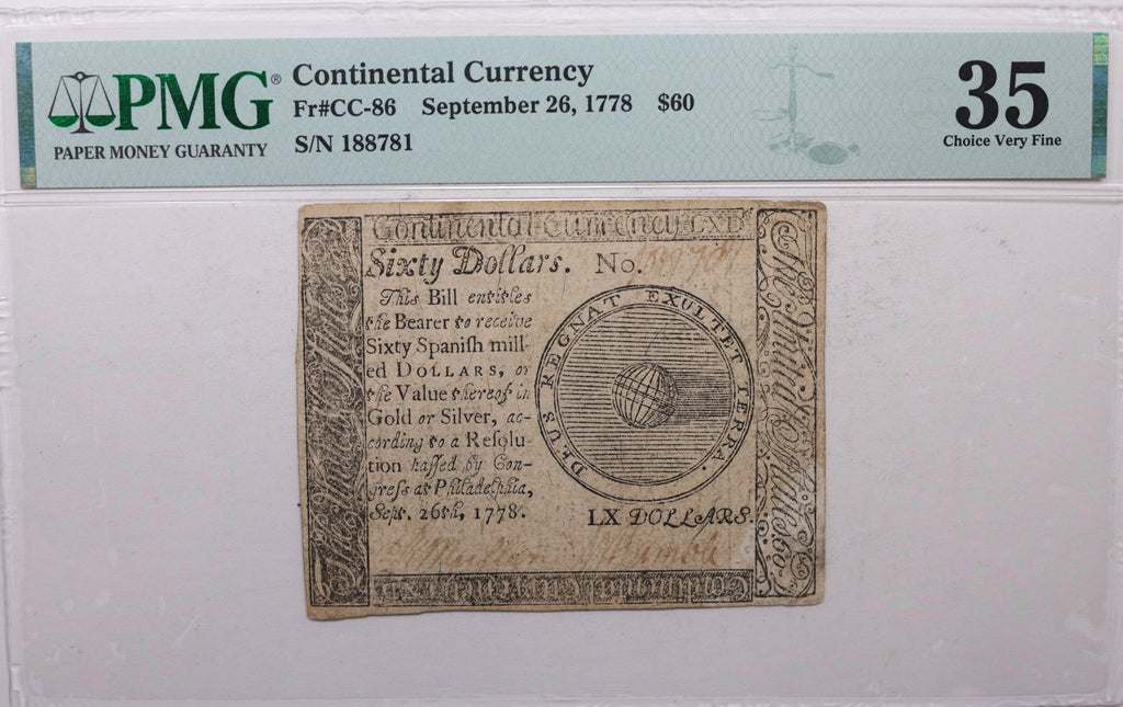 September 26, 1778, Continental Currency, PMG Certified VF-35, Store #GCY0021.