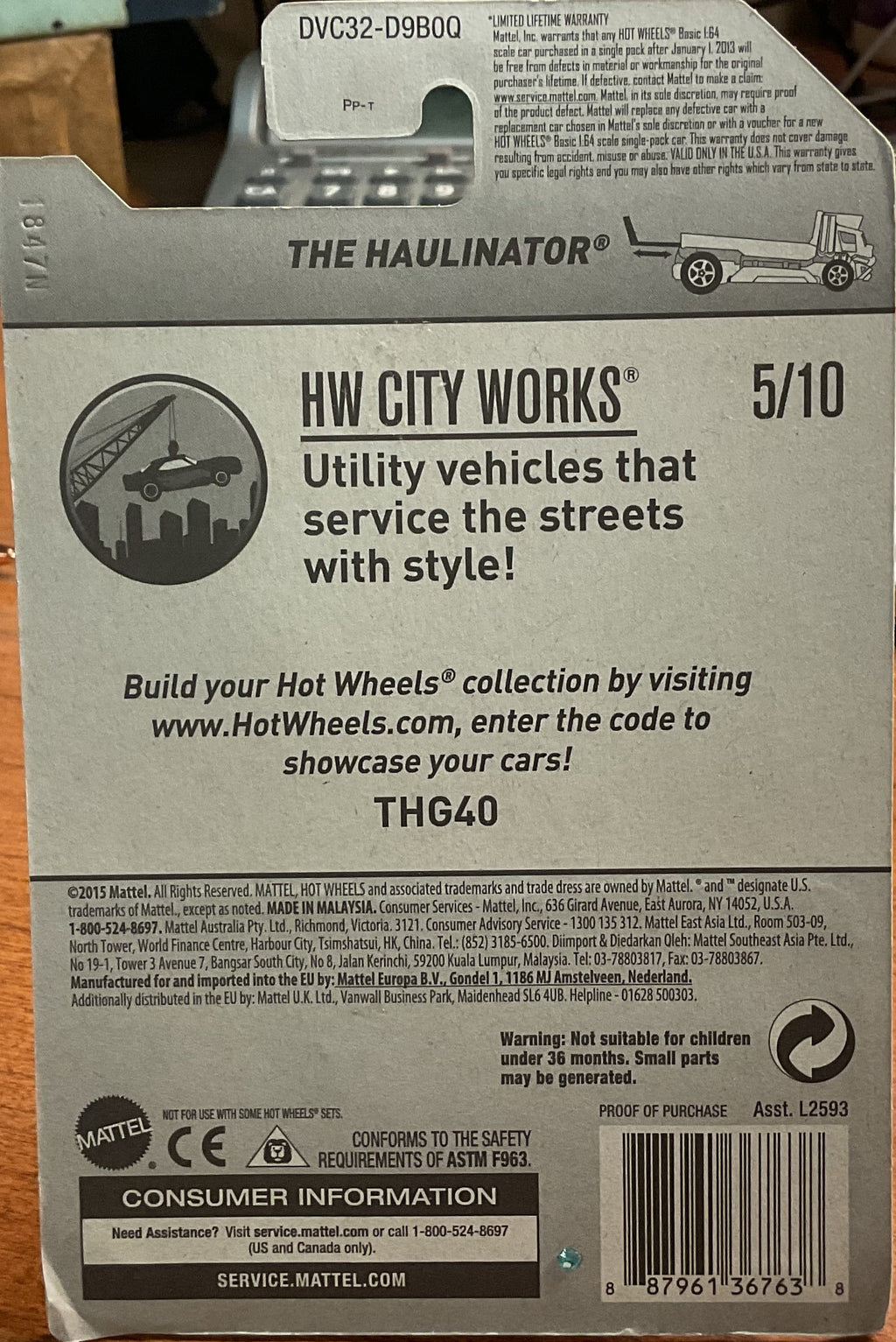 THE HAULINATOR, Hot Wheels Toy Car, DVC32-D9B0Q, 'HW CITY WORKS', Store #TY014