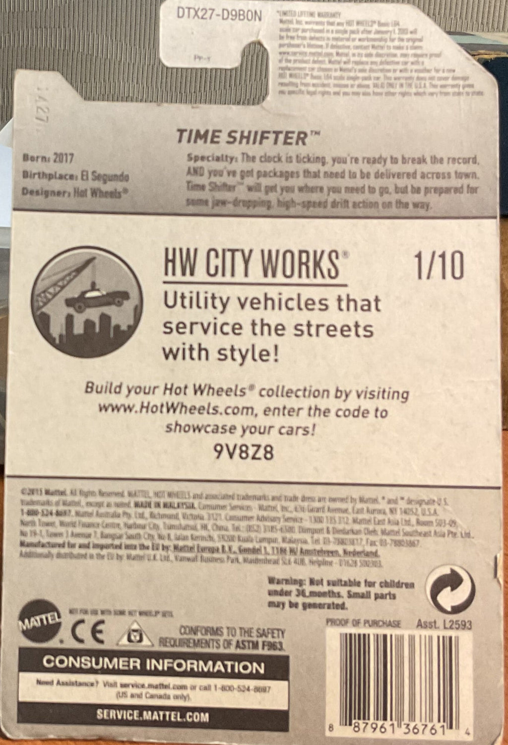 TIME SHIFTER, HW CITY WORKS, Wheels Toy Car, FRR94-D9C0M, Store #TY060